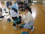20日(月)と21日(火)、総合の時間に高齢者疑似体験学習を行いました。