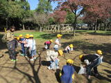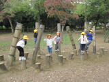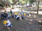 その後、冒険の広場に向かいました。みんなでたくさん落ちているどんぐりを拾いました。生活科のおもちゃ作りに使います。