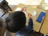 「はしの正しい持ち方」では、はしの持ち方を練習しました。正しいはしの持ち方を意識し、上手にはしを持つことができました。