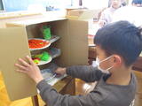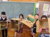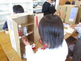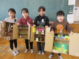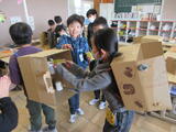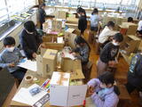 ランドセルの中の世界を自由に想像して、思いついたことを段ボールで表現して楽しみます。