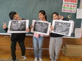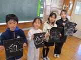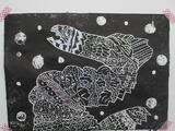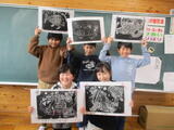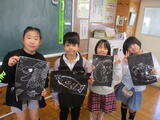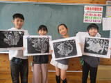 3年生が、ひっかき版画を仕上げました。