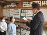 本日中休み、1年1組は今年度最後の「よしみずっ子賞」を校長室でいただきました。