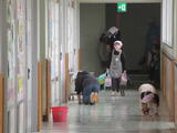 他の児童も黙動を行ったり、1年生に丁寧に清掃の仕方を教えていました。