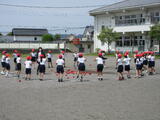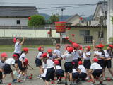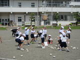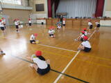 1・2年生・いずみ学級が合同体育で、運動会の練習をしていました。「チェッコリーナ玉入れ」の練習でした。