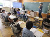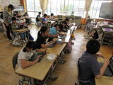 5年生は1組が家庭科の授業で、お湯の沸かし方などを勉強していました。2組は国語の授業で、物語の登場人物について考えていました。