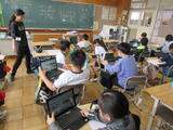 4年生は1組が理科の授業で、春の生きものをタブレット端末で調べ、まとめていました。2組は算数の授業で、折れ線グラフについて勉強していました。