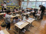 4/27(月)雨天でしたので、業間運動で今年度初めての立腰体操を行いました。保健委員が各クラスでお手本となり、放送に合わせて立腰体操を行いました。1年生もお手本を見ながら、上手にできていました!