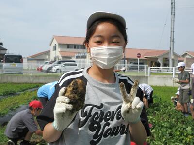 土の中に埋まったじゃがいもを一生懸命掘ったり、大きなじゃがいもを嬉しそうに見せたりする様子が見られました。