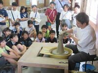 昼食後の見学では、益子焼の作り方を教えていただいたり、実際に作っている様子を見せていただいたりしました。