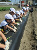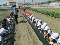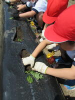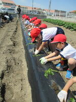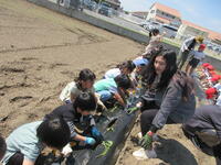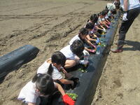 5月8日(木)、2校時に1・2年生でサツマイモの苗植えをしました。