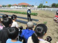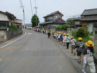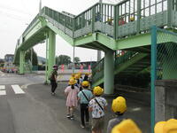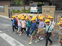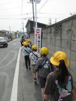 生活科「つうがくろをあるこう」の学習で、道路の歩き方を確認しながら、吉水第1公園まで歩いて行きました。1列に並んで右側を歩く、横断歩道では「右、左、右、手を挙げて横断」と自分の目で安全確認しながら素早く渡ることができました。止まってくれた車やダンプカーの運転手さんに、横断後あいさつをすることもできました。また、出会った近所の方に「おはようございます」と気持ちのよいあいさつもできました。