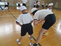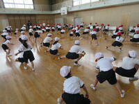 初めに、6年生の迫力ある踊りを見ました。皆「かっこいい!」と憧れの眼差しで見つめていました。その後、6年生と1年生でグループになり、6年生の動きを真似して何回も踊りました。慣れてくると「どっこいしょーどっこいしょー」「ソーラン ソーラン」と掛け声も掛けながら踊れるようになってきました。細かい動きもだんだんできるようになり、とってもかっこよく踊れるようになってきました。本番に向けて、更に練習を頑張りますので、楽しみにしていてください。