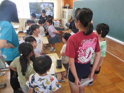 子どものうちに、カルシウムをしっかりとらなければいけない理由や牛乳には吸収しやすいカルシウムがたくさん含まれており、簡単に摂取できることなど、紙芝居やクイズなどで楽しく教えていただきました。
