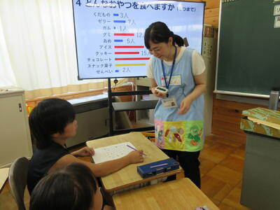 学活の授業で、北部学校給食センターの方に来ていただき、おやつのとり方について学習しました。これを機会におやつのとり方について見直していけたらと思います。