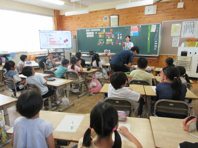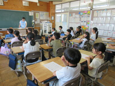 本日、「牛乳を飲もう~カルシウムについて~」というテーマで給食センターの方を講師としてお招きし、授業を行っていただきました。