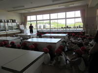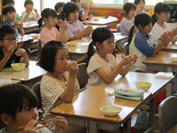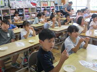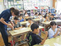 学活の授業で、北部給食センターの方に来ていただき、食事のマナーについて学習しました。正しい姿勢や配膳の仕方、はしの持ち方など教えていただきました。食事のマナーを意識して、お互いに気持ちよく、おいしい給食を食べたいと思います。