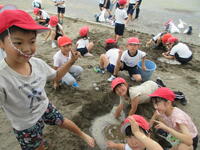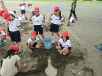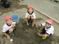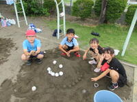 班で声を掛け合って、土の山を作ったり、水を運んだりして活動が広がり、楽しみながら協力をすることができました。