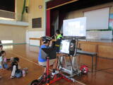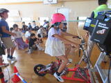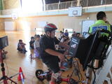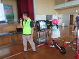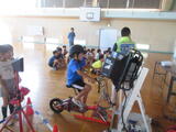 各クラスの代表3名が自転車シミュレーターを使用しました。実際に乗った児童は、「とても難しかったです。」と話していました。