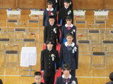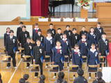 別れの言葉では、6年生と在校生の思いの込もった呼び掛けがすばらしかったです。在校生は、旅立つ6年生に今までの感謝を込めて「大空がむかえる朝」を大きな声で歌いました。6年生は、お世話になった家族や先生、友達に向けて感謝の気持ちと旅立つ決意を込めて「変わらないもの」を歌いました。卒業生と在校生の気持ちが通い合ったすばらしい式になりました。