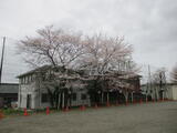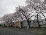 花曇りの空の下で、校庭の桜が咲き誇っています。満開です。