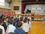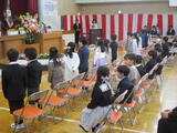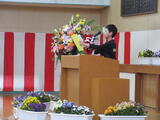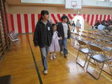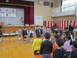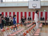 式中は、新入生は緊張した面持ちで、6年生のお兄さん、お姉さんにやさしく手を引かれ、入場してきました。校長先生のお話や在校生の作文など、新入生も在校生もしっかりとした態度で話を聞くことができました。また、新入生呼名のときは、大きな声でお返事をすることができました。