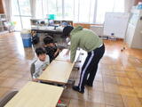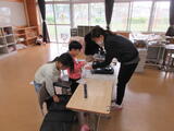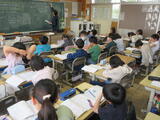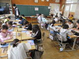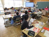 4年生の1時間目は1組が国語の授業で、班になって物語を読んで登場人物について考えていました。2組は学級活動で、班になって学級目標を考えていました。