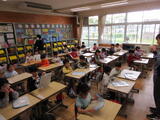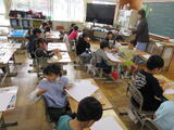 2年生の1時間目は、1組は図工の授業で、自分の好きなことを絵でかいていました。2組は国語の授業で、物語を読んで、その内容について考えていました。