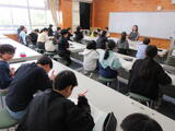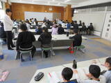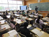 5年生の1時間目は視聴覚室に集まり、臨海自然教室に向けて説明を聞いていました。