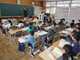 いずみ学級と1年生の、朝の会の様子です。子どもたちは静かに活動していたり、先生の話を聞いたりしていました。